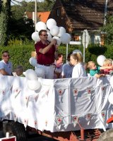 Liebe Mitglieder, hier wieder einmal ein kurzer Bericht über das diesjährige Bürgerfest mit Umzug. Die Organisatoren der drei Treckergespanne hatten sich große Mühe gegeben, die Fahrzeuge festlich zu schmücken. Die Mühe hat sich ausgezahlt, gehörten wir doch zu den schönsten Wagen. Wettergott muss ein Ratzeburger gewesen sein; denn noch besser konnte das Wetter nicht sein. Das letzte Wochenende im August, 19. bis 21. 8. 2011, fand in Ratzeburg das 50 (Jubiläum) Bürgerfest statt. Veranstalter war, wie immer, der „Bürgerverein Ratzeburg und Umgebung“ Natürlich war auch der „Verein Vorstädter Bürger Ratzeburg von 1898“ wie bereits bei allen vorausgegangenen Veranstaltungen dabei. In diesem Jahr wieder mit einem Männerwagen (Die Männer waren in den VVB T-Shirts) einem Damenwagen, die Damen hatten sich im Stil der 60er Jahre gekleidet. Mit ihren schwarzen Haaren, schwarzen Minikleidern und Netzstrümpfen mit Naht ein echter Hingucker, und dann noch der liebevoll geschmückte Wagen der Jugendgruppe mit der Leiterin Astrid Buck. Jedenfalls hat sich der Verein besonders gut dargestellt. Von den drei Wagen des Vereins wurden insgesamt 250 kg Bonbon unter die Zuschauer geworfen. Rundum eine gelungene Veranstaltung. D.R.