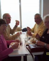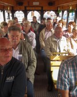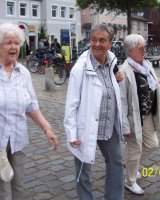 Etwa auf der halben Strecke zum Ziel wurde das von der Fleischerei Grimm zubereitete leckere Frühstück eingenommen. Rechtzeitig kamen wir am Fähranleger in Dagebüll an. Bei ruhiger See landeten wir dann im Hafen von Wyk, wo bereits der „Friesenexpress“ zur Inselrundfahrt auf uns wartete. Die sehr informative Rundfahrt endete direkt an der Sonnenpromenade in Wyk. Hier gab es die Gelegenheit zum Shoppen oder in aller Ruhe noch ein Kaffeegedeck zu sich zu nehmen. Zeitig um 16.30 Uhr brachte uns dann die Fähre wieder zu den Bussen in Dagebüll. Auf der Rückfahrt wurde noch ein Abendessen am Bus gereicht. Nach einem erlebnisreichen Tag endete unsere Tour gegen 21.00 Uhr wieder in der Inselstadt.