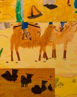 Um 13 Uhr waren wir dann aber alle wieder vollständig versammelt, um im Restaurant „Längengrad“ ein sehr üppiges und gutes Mittagsbüffet zu genießen. Gestärkt ging es nun in 5 Gruppen und jeweils einem Scout auf Reisen. Wir folgten dem 8. Längengrad Ost in Bremerhaven auf den Bahnschienen bis nach Isenthal im Kanton Uri der Schweizer Alpen, wo die Kuh gemolken und die Kuhglocken geschwungen werden konnten. Nach einem kurzen Anstieg in den Bergen gelangten wir nach Seneghe in Sardinien. Dies erlebten wir aus der Perspektive eines Insekts. Weiter ging es nach Kanak in Niger, um einen Tag in der Sahelzone zu verbringen. Wir kamen nach Ikenge in Kamerun, wo die Mutigen unter uns, den Weg über die Wackelbrücke nahmen, um den Regenwald bei Nacht zu durchwandern. Und dann kam die ersehnte Abkühlung nach Hitze und Schwüle – wir besuchten eine Polarstation in der Antarktis. Doch Eis und Schnee konnten uns nicht davon abhalten, auch noch dem Südseeparadies Satitoa einen Besuch abzustatten. Wir chillten am Strand und gingen durch eine wundervolle Wasserwelt mit Korallenriffen und schillernden Fischen.