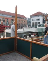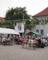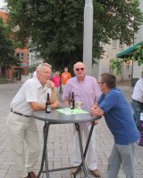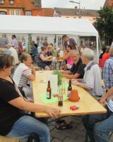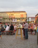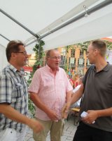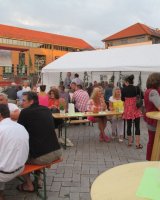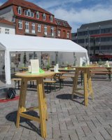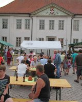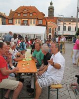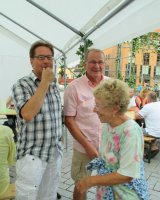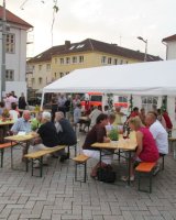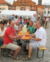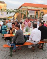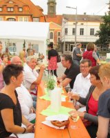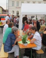 Unser Weinfest auf dem Marktplatz ist auf dem besten Wege zu einer schönen Tradition in Ratzeburg zu werden. Am Sonnabend den 3. August haben wir dieses Fest nun schon zum zweiten Mal veranstaltet. Ursprünglich war es ja als ein „besonderer“ Beitrag zum Stadtjubiläum in 2012 gedacht, aber nach dem Erfolg im letzten Jahr war der Vorstand schnell der Meinung, eine Fortsetzung muss her. Es wäre wirklich schön, wenn wir aus dem Weinfest eine Tradition machen könnten und so wie es aussieht, stehen die Chancen dazu gar nicht schlecht. Trotz sehr sommerlicher Temperaturen und aufziehender Gewitterwolken trafen sich bereits am frühen Abend viele Ratzeburger, um in netter Gesellschaft und mit köstlichen Weinen den Abend zu genießen. Zur Spitzenzeit waren alle Tische und Stehtische besetzt und es wurden sehr viele Gespräche und „Klönschnacks“ geführt. Viele Gäste sagten mir später, dass sie es als besonders schön empfanden, so viele Ratzeburger Bürger zu treffen, Menschen die man teilweise schon lange nicht mehr gesehen hatte.
