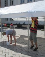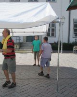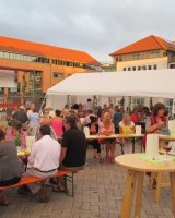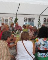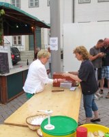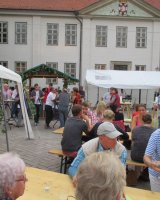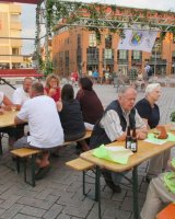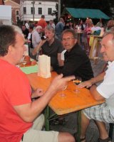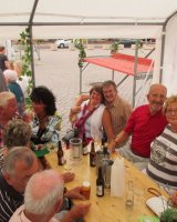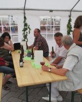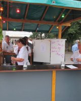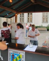 Die Bewirtung hatte auch diesmal wieder Matthias Schorbach vom Ratzeburger Restaurant „Tennishouse“ in der Hand. Er wurde im Service wie im letzten Jahr von den Damen des Vereins in ihren schönen Trachten tatkräftig unterstützt. Ebenfalls der Hitze trotzend, bemannte die Feuerwehr Ratzeburg den Grill und kümmerte sich mit Würstchen um den kleinen Hunger. Zu einem Weinfest gehört natürlich auch schöne Musik und die wurde - natürlich „Life“ - von Roland Zymiany geboten. In diesem Jahr hatte Sabine Gustas die Hauptverantwortung für die Organisation des Festes übernommen und das Ergebnis zeigt, dass sie „das richtig gut kann“!!! Auf- und Abbau der vielen Einrichtungen wurde wieder von der bewährten Helfermannschaft erledigt. Bis nach 23 Uhr feierten Ratzeburger und Gäste - und trotz anderer Vorhersagen hat es nicht ein einziges Mal geregnet - das zweite Ratzeburger Weinfest. Eine Wiederholung im nächsten Jahr nehmen wir schon mal in die Planung auf.