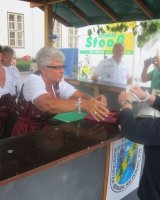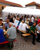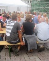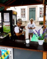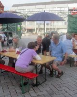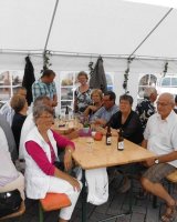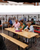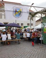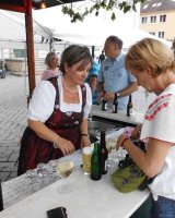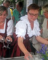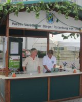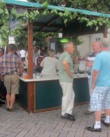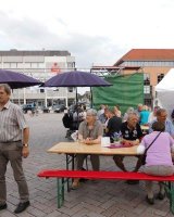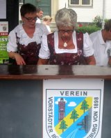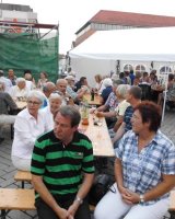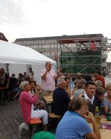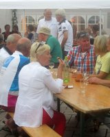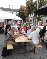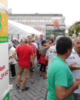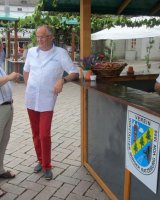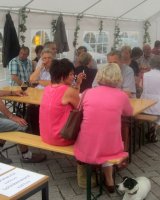 Ob im Zelt oder unter freiem Himmel – die 120 Sitzplätze waren restlos besetzt. „Habt ihr noch Reservebänke stehen?“ – diese Frage hörten die Mitglieder der Vereins Vorstädter Bürger auf dem Weinfest nicht allzu selten. Rundum zufrieden war auch der 1. Vorsitzende des Vereins Vorstädter Bürger, Heinz Suhr. Doch der Dank gelte vor allem der Organisatorin Sabine Gustas. Schon im zweiten Jahr hat sie bei dem Weinfest die Mütze auf und organisiert was das Zeug hält. Jeden Wein kritisch beäugt brachte sie sechs Weißweine, einen Roséwein, einen Rotwein sowie einen Keesecco (Prosecco) vom Winzer des Vertrauens mit.
