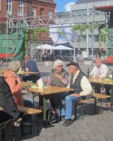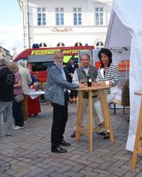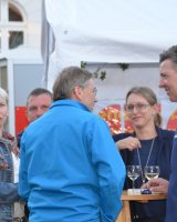Es war, wie immer, eine schöne Gelegenheit um mit Freunden und Bekannten im Freien zu sitzen, zu „klönen“ und ein gut gekühltes Glas Wein zu trinken. Zum fünften Mal machte der Verein den Ratzeburger Marktplatz wieder zur Open-Air-Weinstube und lud zum traditionellen Weinfest ein. Ob im Zelt oder unter freiem Himmel, die 140 Sitzplätze waren restlos besetzt. Viele weitere Gäste nahmen zusätzlich noch das Angebot der Plätze an den Bistrotischen und den beiden liebevoll geschmückten Pavillons an.