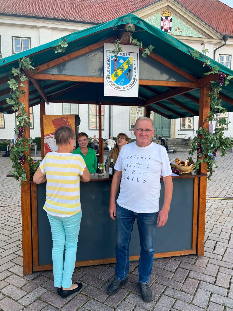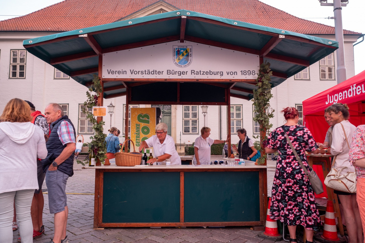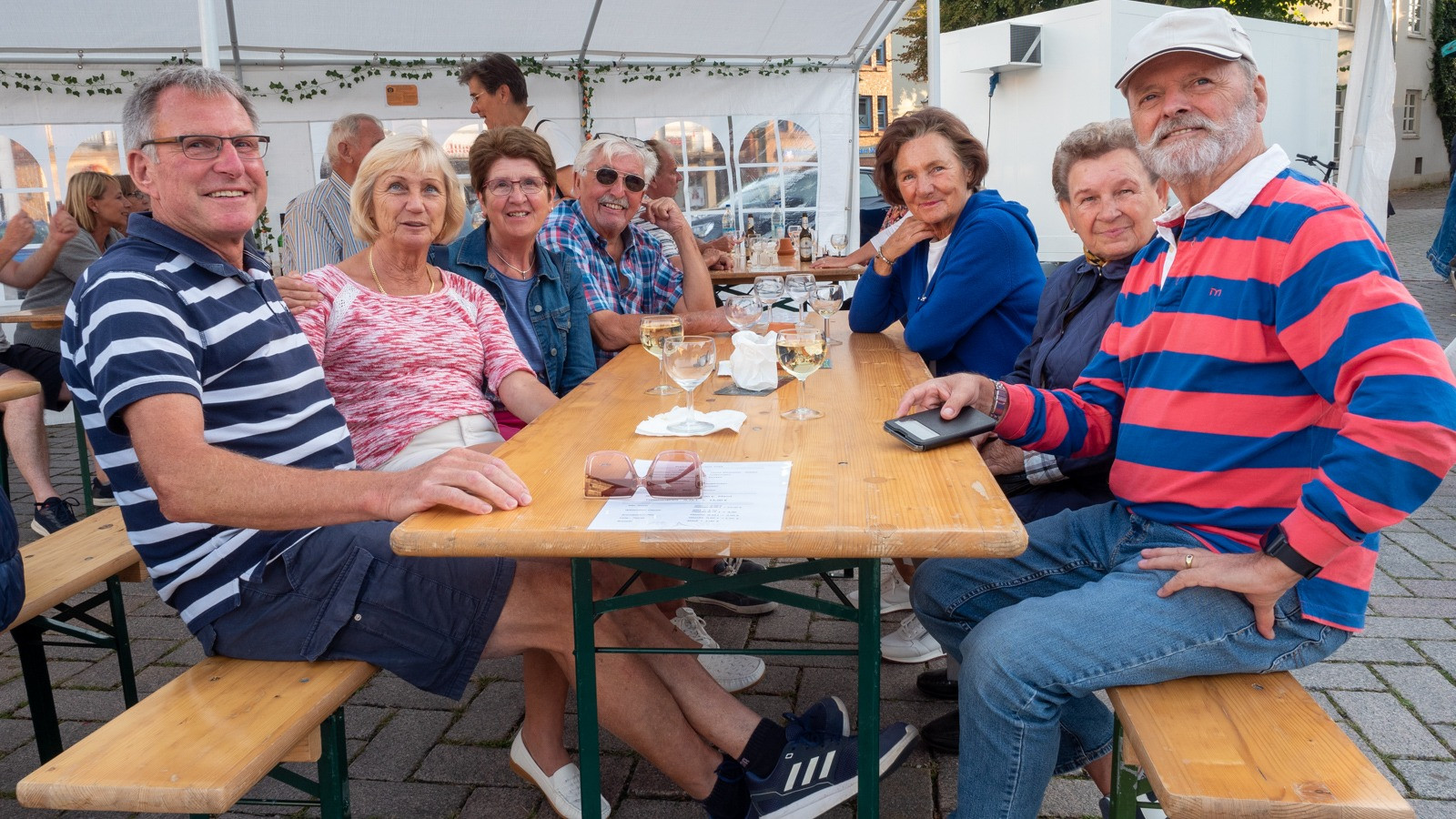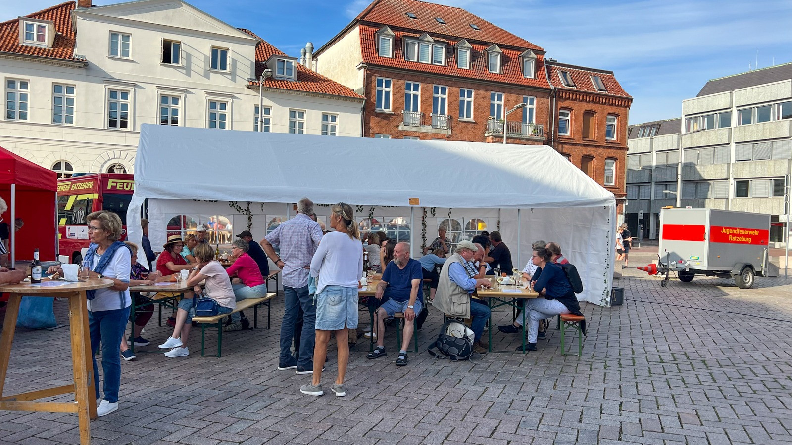 Zum Wohle: Am 20. August lud der Verein „Vorstädter Bürger Ratzeburg von 1898 e. V.“ zum achten Ratzeburger Weinfest ein. Um 17 Uhr begann der gesellige Umtrunk auf dem Ratzeburger Marktplatz, der bis etwa 23 Uhr andauerte. Das Angebot hatte für jeden Gaumen etwas parat: ganz gleich, ob weiß, rot oder rosé - ganz gleich, ob kritischer Connaisseur oder eher seltener Verkoster des vergorenen Rebensaftes. Für die nötige Substanz sorgten frische Brezen. Und wer mit dem bacchischen Genuss nun wirklich nichts anfangen konnte oder noch fahren musste, für den wurden auch Softdrinks ausgeschenkt.