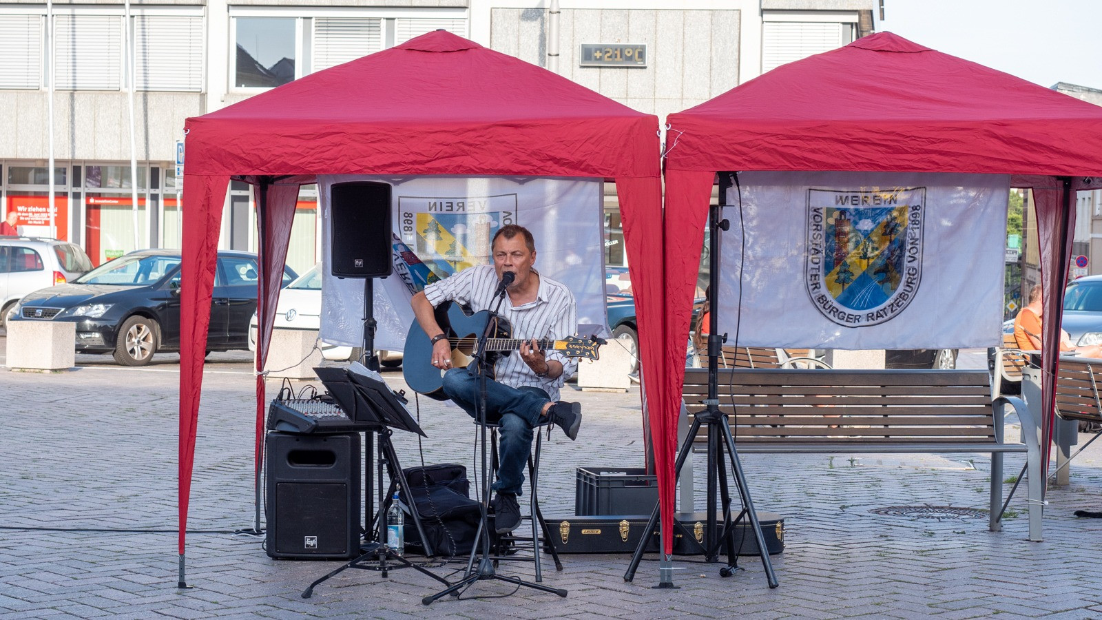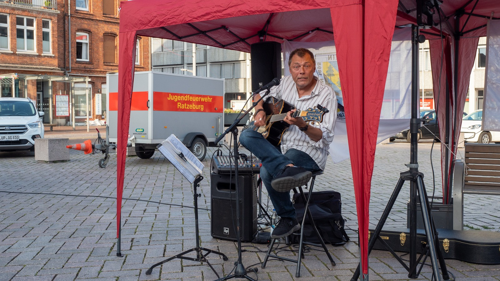 Das Weinfest steht unter dem Motto des Bürgervereines: „Wir fördern die Verbundenheit unter den Bürgern unserer Stadt.“ Ganz in diesem Sinne waren auch die Jugendlichen der Freiwilligen Feuerwehr dabei und versorgten die Gäste mit leckeren Bratwürsten. Unterstützung gab es außerdem vom Stormarner Sänger und Gitarristen Jörg Wagenknecht alias „Georgie Carbutler“. Von 18 Uhr an lieferte der Musiker mit allseits bekannten Songs die richtige Stimmung für einen munteren und lustvollen Abend.
